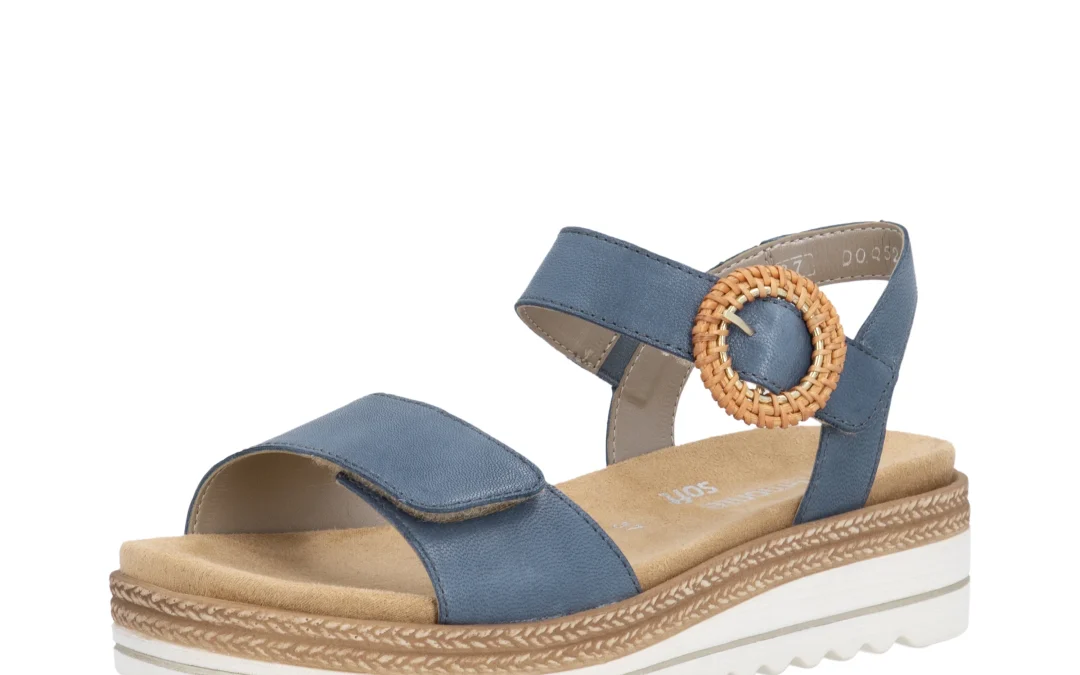 D0Q52-14 Ladies Sandal Featured, Women's Sandals & Casual Footwear Remonte Ladies Sandals Hook & Loop Width: F 1/2 Heel Height: 39.9mm Lining: Slight Velour/Synthetic Sole: Light PU Colour: Blue Sizes: 36-43