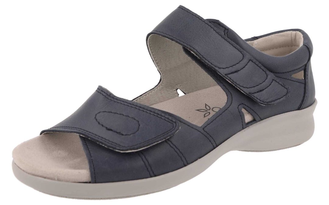 A neat sandal, both supportive and easily adjustable for a comfortable fit.